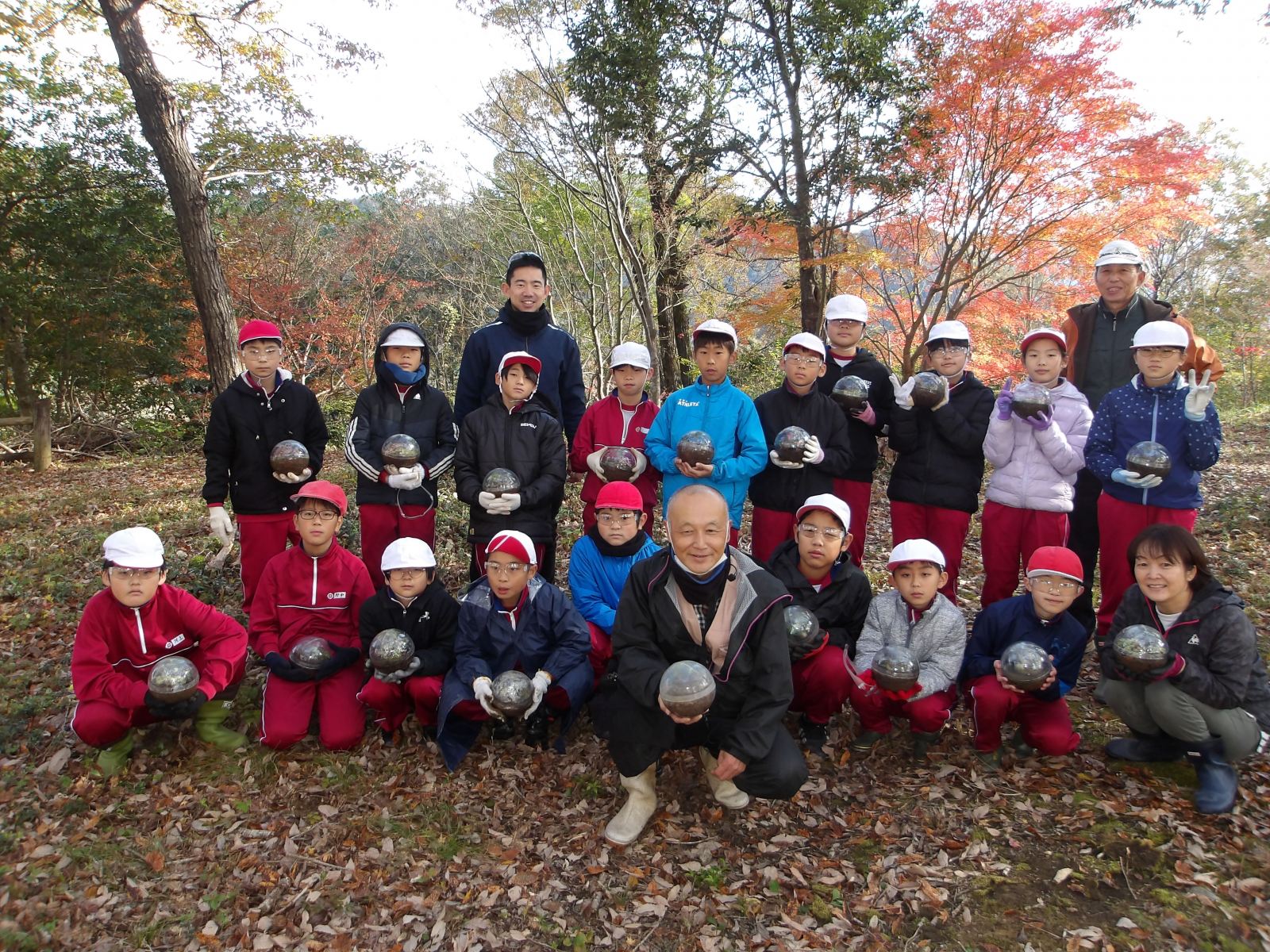 その後、クヌギの植樹(どんぐり・苗木)や原木しいたけの植菌など、